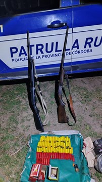 El procedimiento permitió el secuestro de dos escopetas, más de 100 cartuchos y una motocicleta Yamaha YBR. La intervención se originó a partir de un llamado de vecinos que alertaron sobre la presencia de personas armadas cazando en la zona.