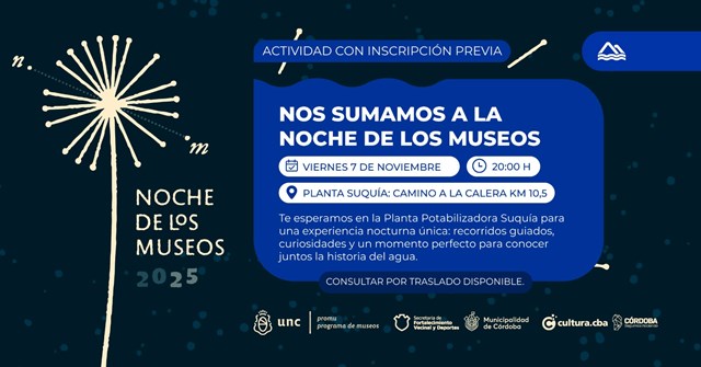 La magia de la Noche de los Museos vuelve a tener fecha en Córdoba, una jornada esperada cada año por miles de vecinos que salen a recorrer la ciudad desde una mirada distinta: la del arte, la historia y la curiosidad compartida. En esta edición, Aguas Cordobesas se suma con una propuesta única que invita a descubrir el fascinante camino del agua bajo la luz de la noche.