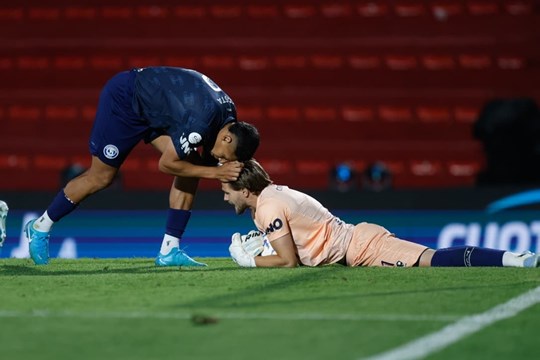 Por su parte, Argentinos Juniors acertó con Lescano, López Muñoz y Giaccone, pero Tomás Molina vio su disparo detenido por Marinelli, en dos oportunidades ya que tuvo que repetir porque se adelantó el portero. Quien se vistió de héroe y desató la leprosa azul en Córdoba.