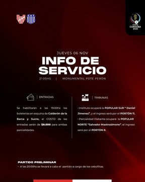 Instituto debutará esta noche en la Copa Córdoba cuando reciba a Talleres de Berrotarán en el Monumental de Alta Córdoba, desde las 21.15. El encuentro definirá al rival de Talleres de barrio Jardín en semifinales y contará con la presencia de ambas hinchadas. Las entradas se podrán adquirir desde las 19 en las boleterías ubicadas en Sucre y Calderón de la Barca, con un valor de $8.000 para ambos públicos.