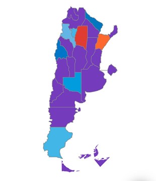 El mapa electoral muestra un país mayoritariamente violeta: La Libertad Avanza ganó en la mayoría de las provincias, mientras que fuerzas locales y alianzas provinciales conservaron presencia en algunas jurisdicciones del centro y norte del país.