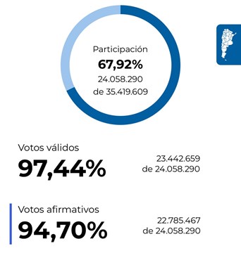 El dato más destacado de la jornada fue la baja participación electoral: votó el 67,92% del padrón, es decir, 23.921.440 personas sobre un total de 35.217.928 habilitadas. Es la participación más baja desde el retorno de la democracia en 1983, lo que marca un fuerte contraste con la magnitud del triunfo oficialista.