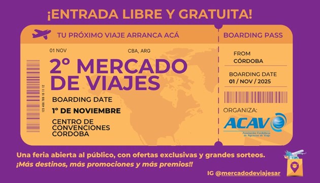 El próximo sábado 1° de noviembre de 12 a 21hs, el Centro de Convenciones Córdoba será escenario de la segunda edición de Mercado de Viajes, un evento abierto al público que reunirá a más de 150 expositores entre agencias, aerolíneas, hoteles, asistencias al viajero y destinos nacionales e internacionales. Tras un exitoso debut en 2024 con más de 2.000 visitantes, esta nueva edición promete redoblar la apuesta con más propuestas, descuentos exclusivos, sorteos y un patio gastronómico con sabores de distintos rincones del mundo.