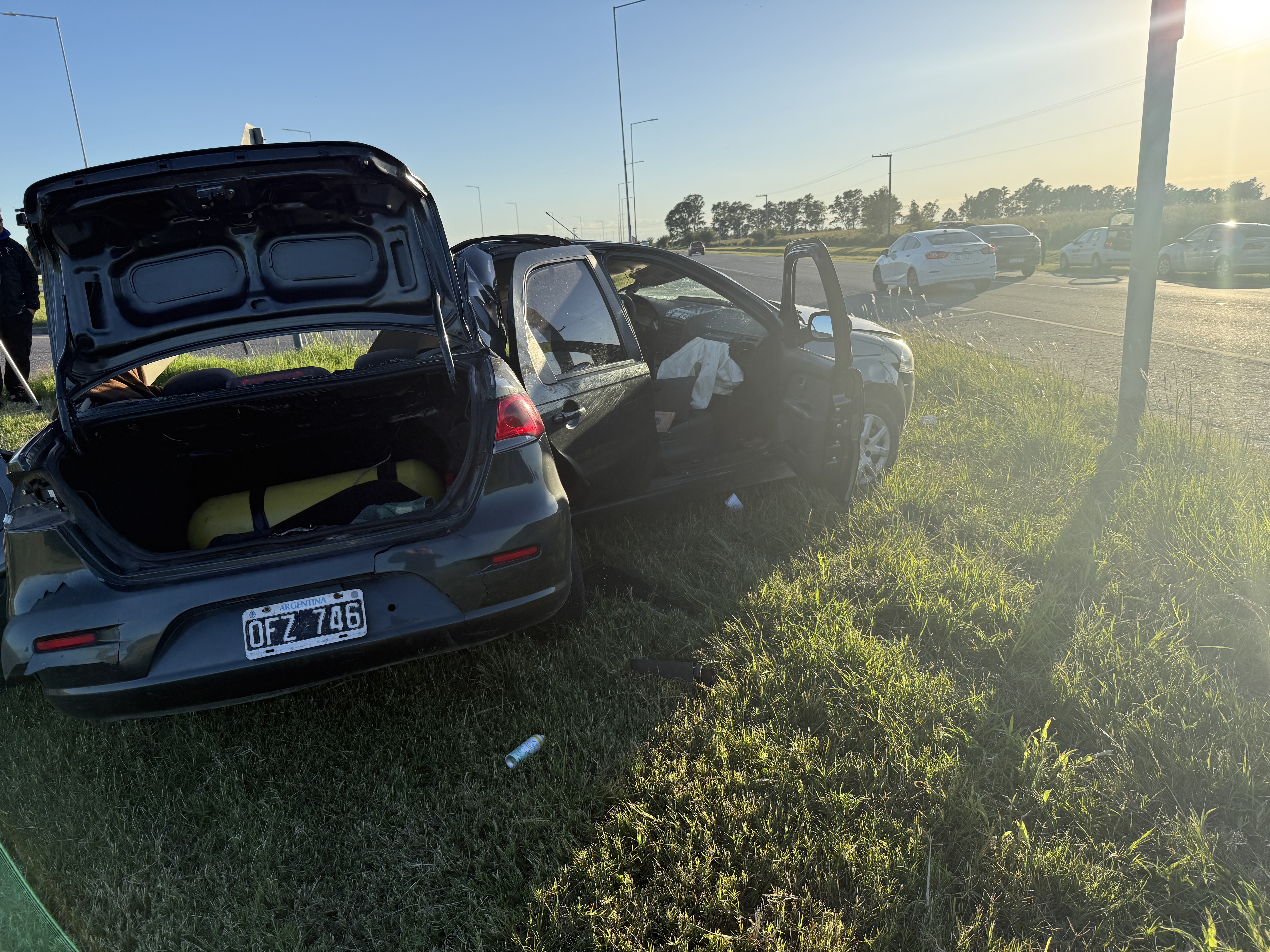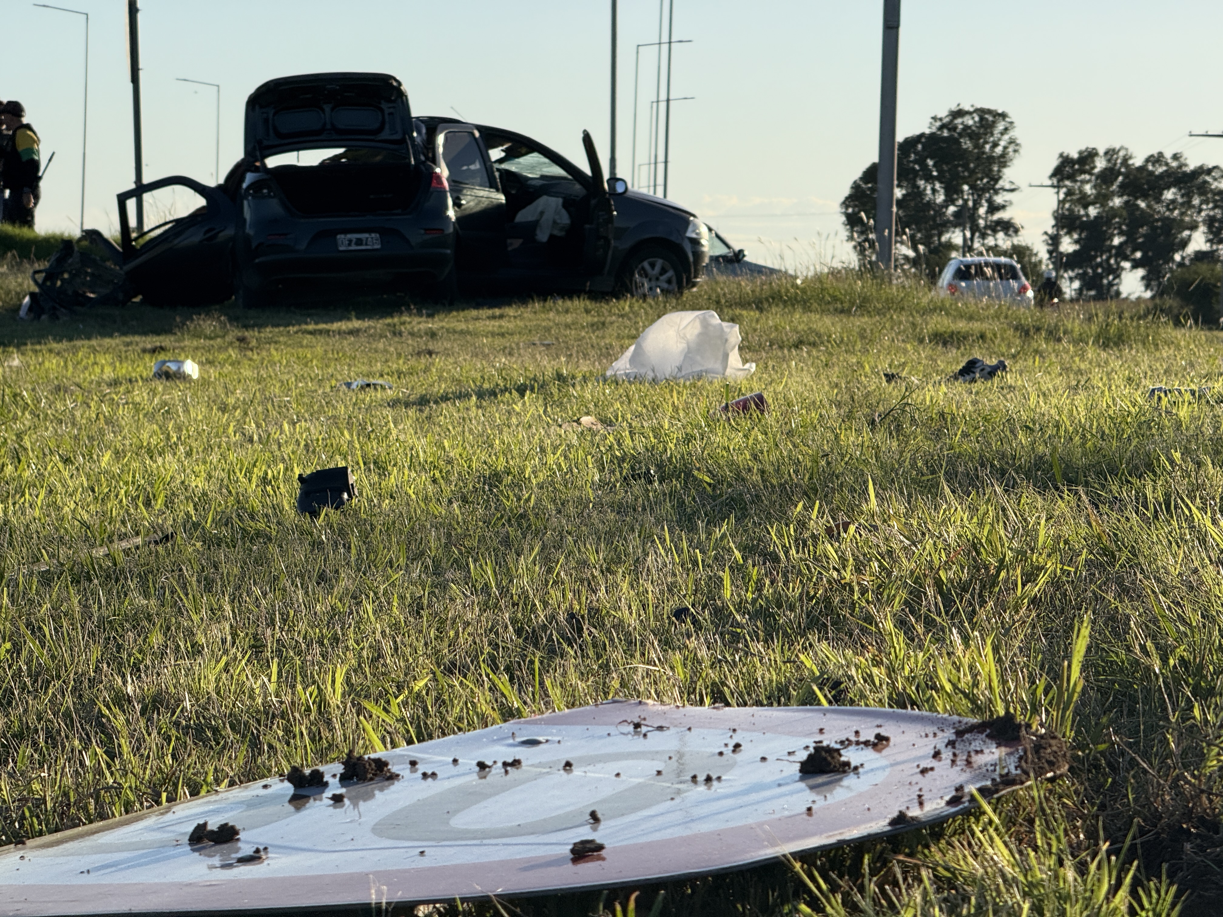 El hecho se produjo cuando un Fiat Siena en el que viajaban tres personas despistó por causas que se investigan y terminó impactando contra una señal de tránsito y un poste de alumbrado público.