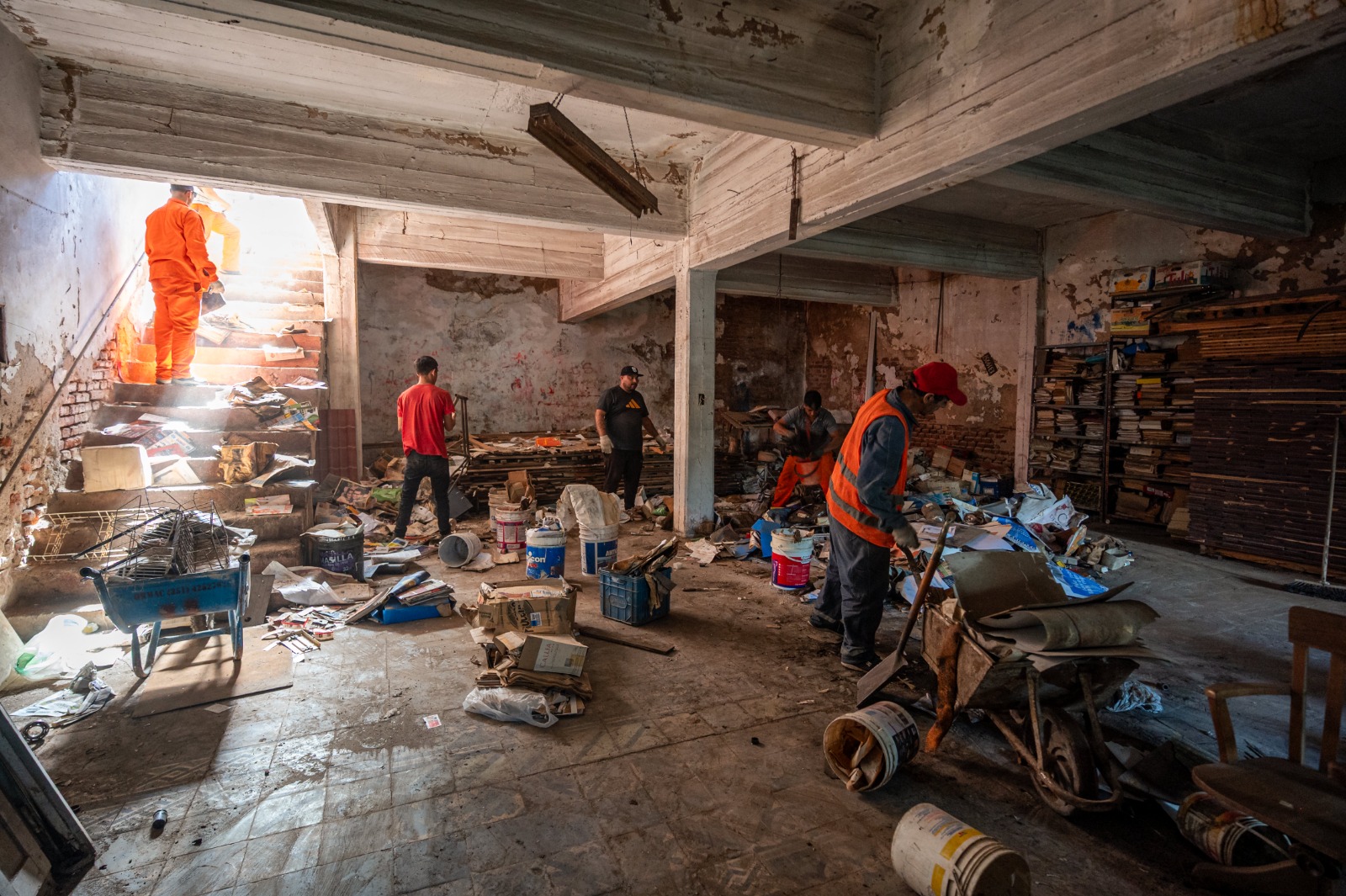El operativo se extendió durante ocho días e incluyó tareas manuales y el uso de maquinaria pesada para erradicar el basural que se había formado dentro del inmueble, ubicado sobre calle Tomás Guido. Entre los desechos había envases plásticos, restos de poda, cartones, papeles, muebles en desuso, electrodomésticos, estructuras metálicas e incluso una camioneta cubierta por la basura.