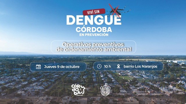 La Municipalidad de Córdoba reanudará este jueves a las 10 de la mañana el Plan Integral de Combate contra el Dengue, con una jornada de limpieza y ordenamiento ambiental en barrio Los Naranjos. La iniciativa busca anticiparse al verano y prevenir la proliferación del mosquito Aedes aegypti, vector de la enfermedad.