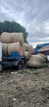 El hecho ocurrió alrededor de las 6:50 y fue protagonizado por un tren que remolcaba 60 vagones y un camión Mercedes Benz 1634 que transportaba rollos de alfalfa.
