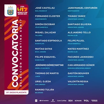 Diego Placente dio a conocer la lista de 21 jugadores convocados para la Selección Argentina Sub 17, que participará del Mundial de Qatar entre el 3 y el 27 de noviembre.