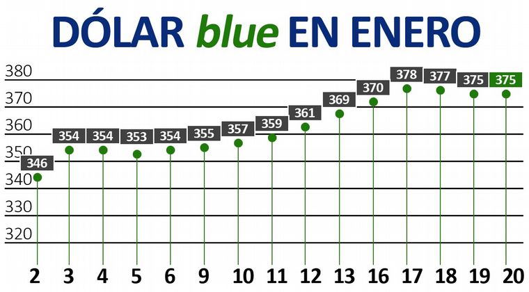 La evolución del dólar blue desde el 2 al 20 de enero.